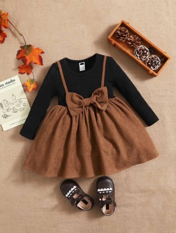 Baby Girls Below Knee Casual Dress (Black, Brown, Full Sleeve)