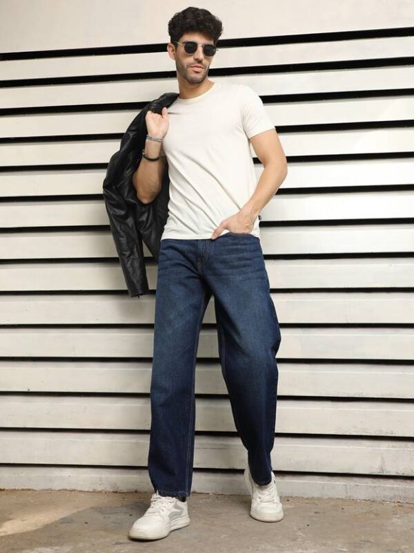 Men Loose Fit Mid Rise Light Blue Jeans