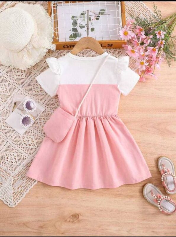 Baby Girls Calf Length Casual Dress (Pink, Short Sleeve)