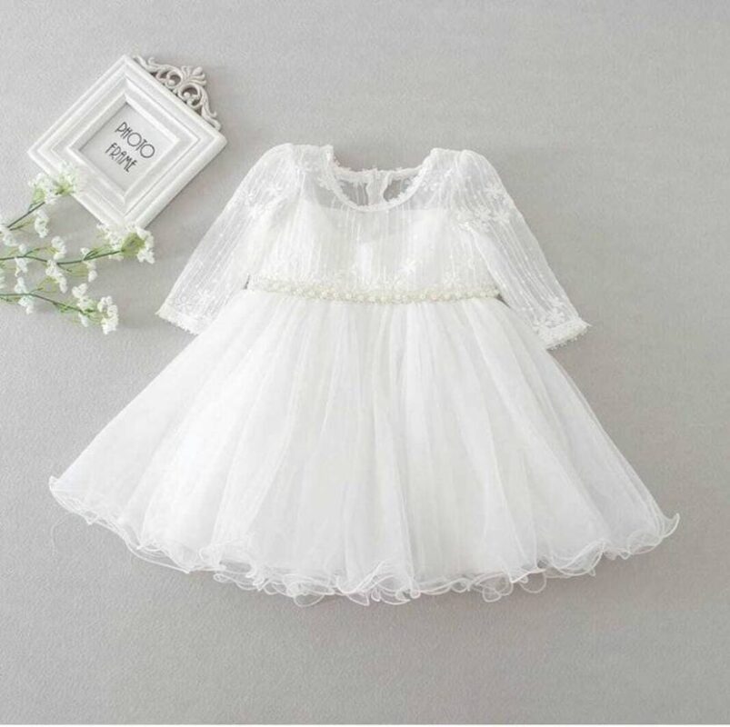 Donald Baby Girls Calf Length Festive/Wedding Dress (White, Full Sleeve)