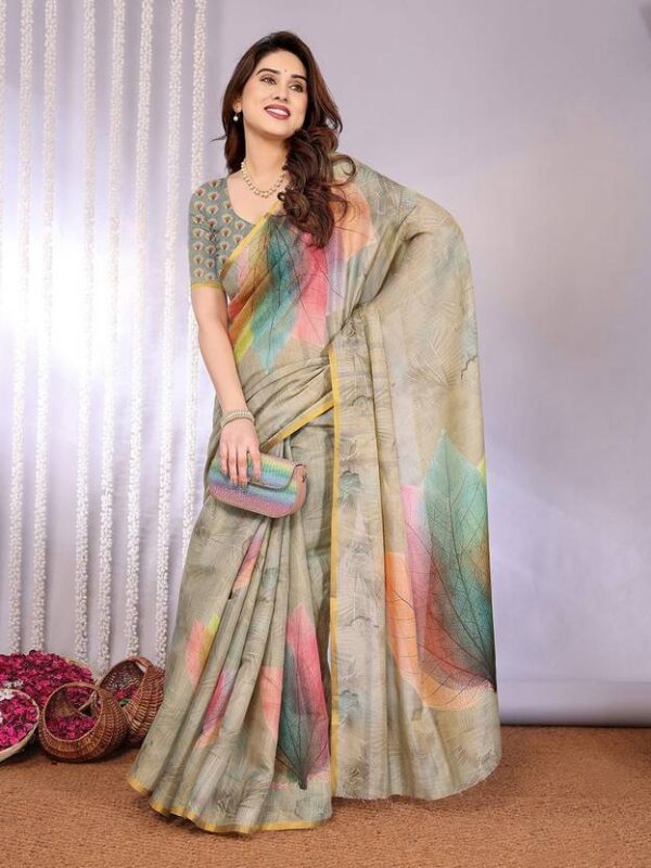 Printed Bollywood Cotton Silk Saree (Pack of 2, Beige, Pink, Red)