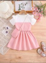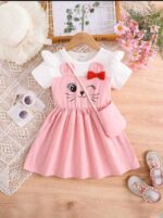 The beautiful **pink color** adds a touch of innocence and playfulness, while the **short sleeves** make it ideal for warm days and active play. Its **calf-length design** gives a graceful silhouette that’s perfect for casual outings, birthday parties, or family get-togethers.