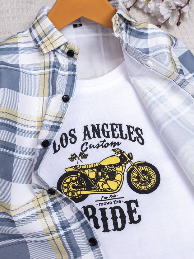 Add charm and confidence to your boy’s festive wardrobe with this **Boys Party (Festive) Shirt Track Pants (Steel Blue)** set. Perfectly combining comfort with style, this outfit is designed to make your little champ look effortlessly dashing at every celebration.