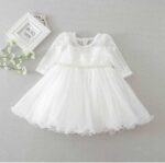 The soothing **white color** symbolizes purity and innocence, beautifully complementing the gentle detailing and soft texture of the fabric. Lightweight yet luxurious, this dress ensures your baby feels as special as she looks.