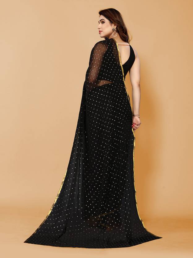 Embellished, Printed Bollywood Chiffon Saree (Black, Gold)