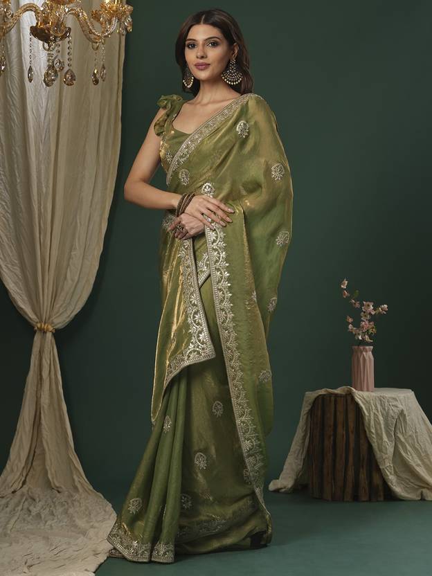– 🎨 **Color:** Elegant Light Green with golden embroidery accents